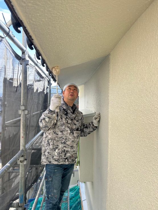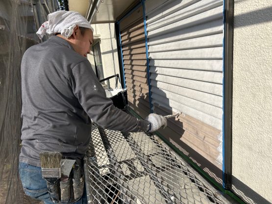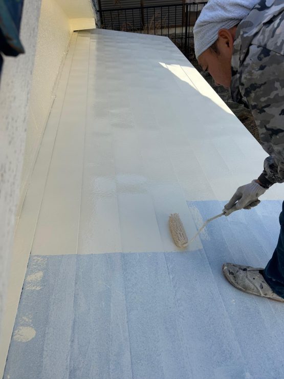 住宅塗装工事④ 外壁 軒天井 鉄製部分「中塗り」 南区K様邸