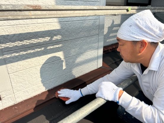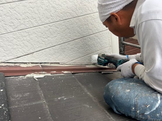 外壁材を少し削って 雨水の逃げ道を作り 雨漏りを回避します。
