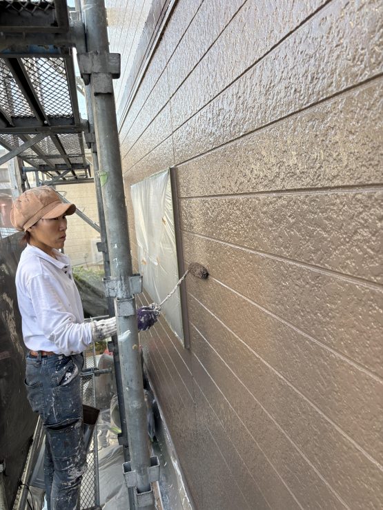 外壁の「上塗り」塗装が完了し 乾燥を確認しましたら