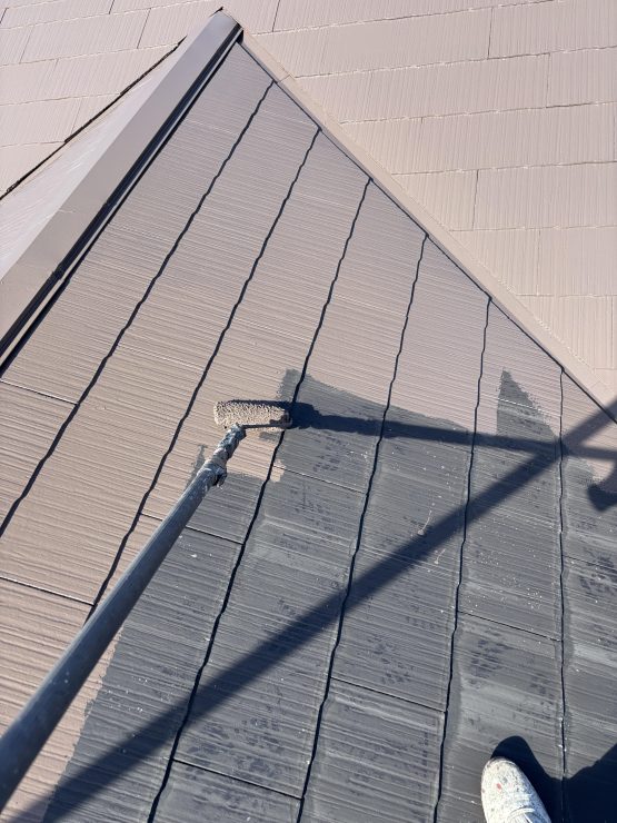 コロニアル瓦屋根の「下塗り」も全体に行っていきました。
