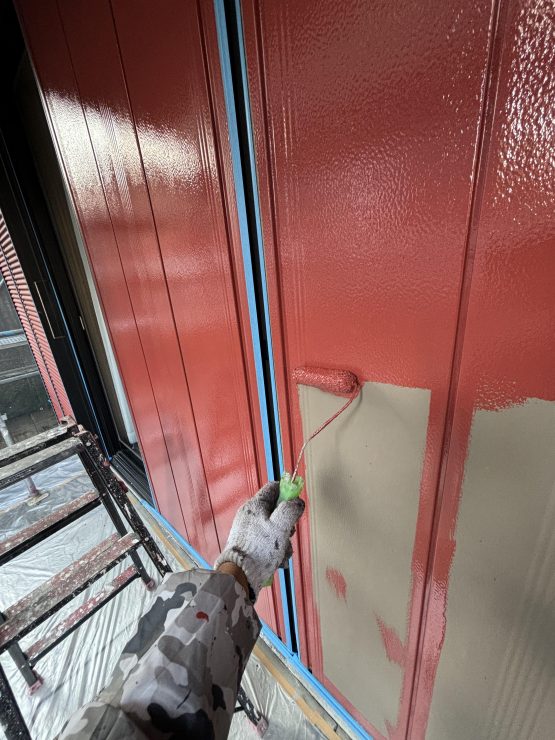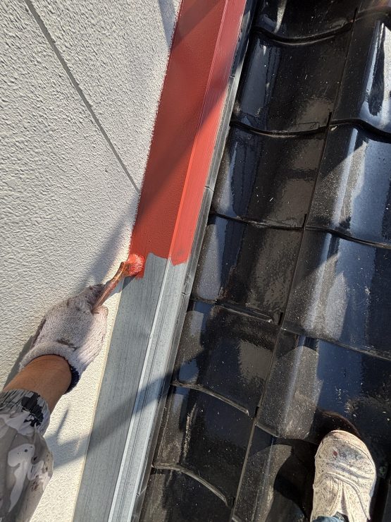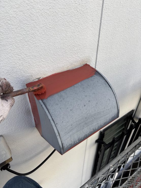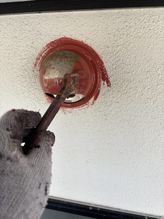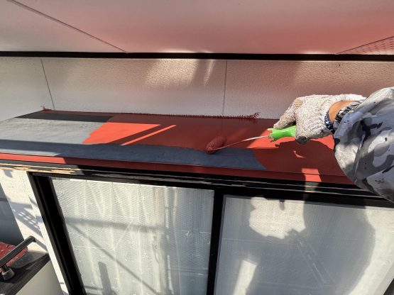 雨戸の戸袋や雨戸も「下塗り」とそして錆止め塗装を行っております。
