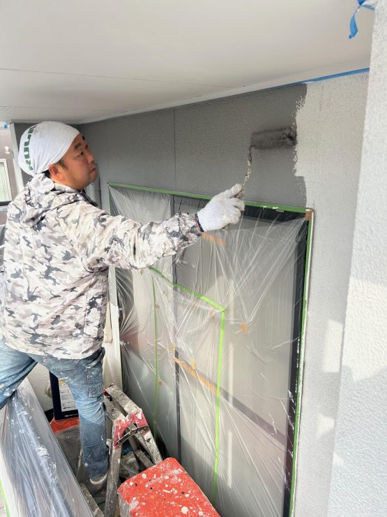 外壁の「中塗り」 を終えましたら ↑こちらのファインウレタンという