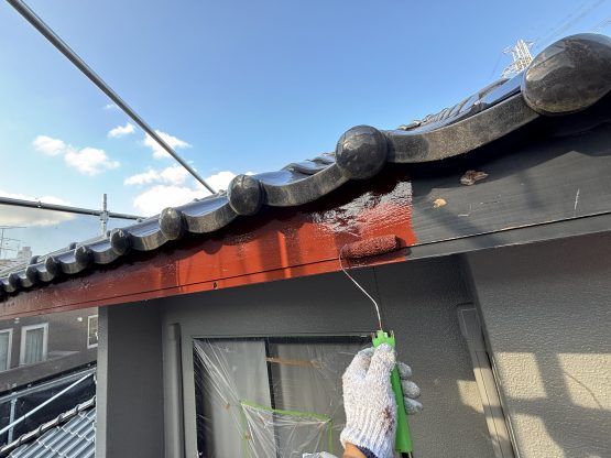 木部分専用の下塗り塗料にて 破風板などの「下塗り」を行っていきました。