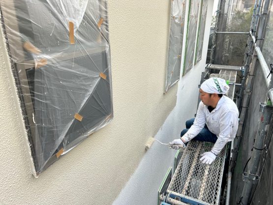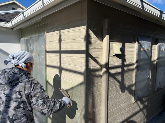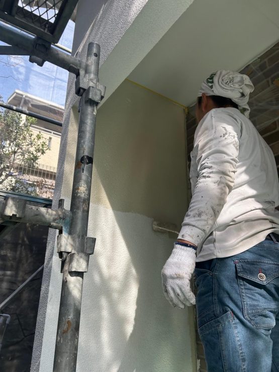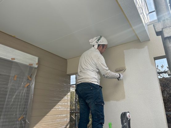 ローラーの目も出ないように 厚塗りをした下塗りの凹凸を綺麗に生かすように