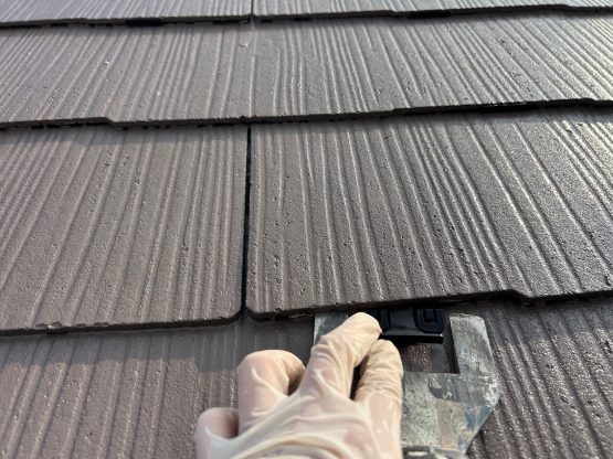 昨日 「下塗り」を終えたコロニアル瓦へ 「縁切り」として