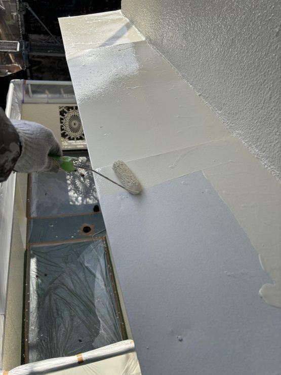 住宅塗装工事  外壁 軒天井 鉄製部分「下塗り」 南区K様邸