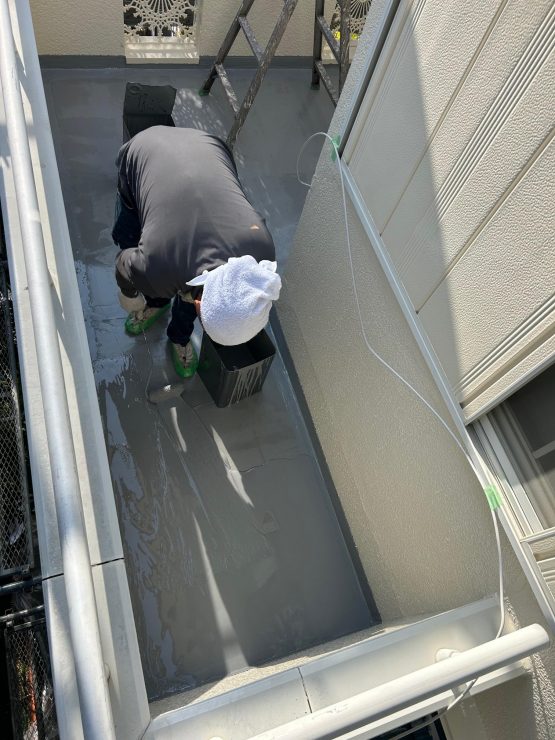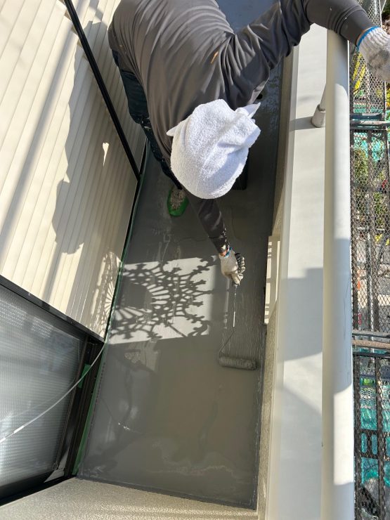 本日は もう一度前面に ウレタン樹脂材にて防水層厚く塗布していきます。