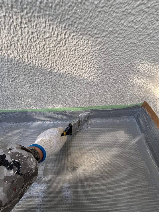 先ずは 立ち上がり部分にしっかりと立ち上がり部分専用のウレタン防水材を塗布して
