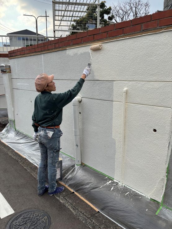 塀の「上塗り」で すべての塗装作業が完了なる予定です。